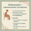 La sédentarité, c'est à dire le manque d'activité physique régulière, a un impact direct sur la circulation sanguine et lymphatique. Lorsqu'on reste trop longtemps assis ou debout sans bouger, les muscles des jambes (notamment les mollets) ne sont pas sollicités. Or, ces muscles jouent un rôle clé dans le retour veineux et lymphatique : on parle parfois de "pompe musculaire".